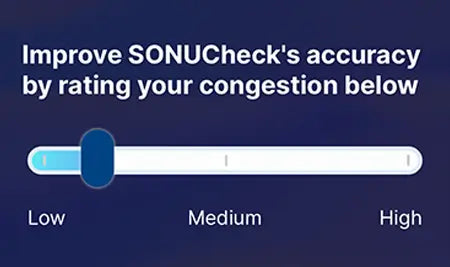 SONUCheck is an innovative feature within the SONU app, allowing you to assess your nasal breathing with just subtle changes in your voice. Research shows that vocal biomarkers can indicate health conditions. Using your voice, SONUCheck creates a personalized “nasal patency score”—a real-time indicator of how open and clear your nasal passages are.