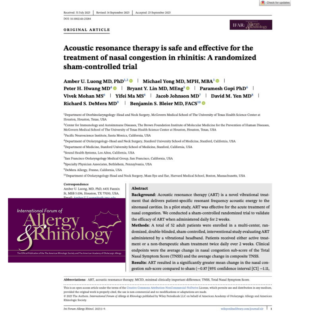 Acoustic resonance therapy is safe and effective for the treatment of nasal congestion in rhinitis: A randomized sham-controlled trial