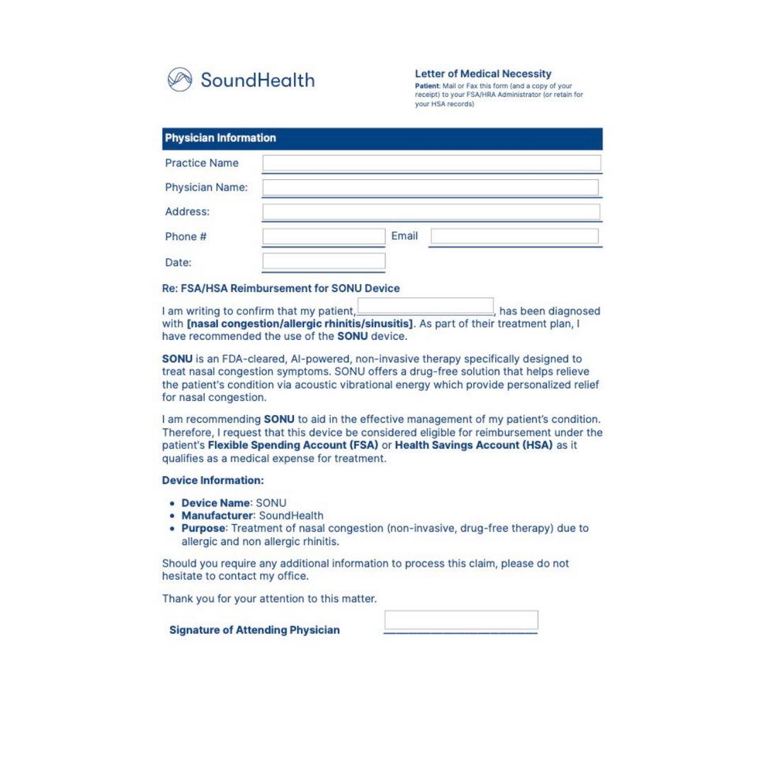 SONU is indicated for the relief of moderate to severe nasal congestion due to allergic and non allergic rhinitis. SONU is a treatment to be used at home by individuals 12 and older. Individual results may vary.